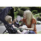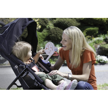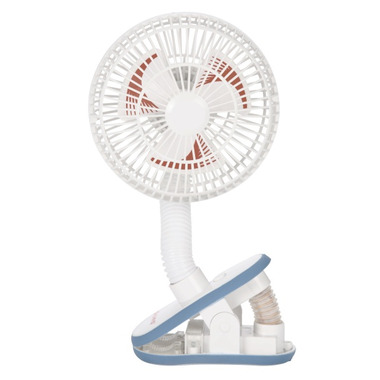 Clip-on fan attaches easily to buggies to keep the breeze flowing. Fan cover protects small fingers. Requires 2 AA batteries, not included.