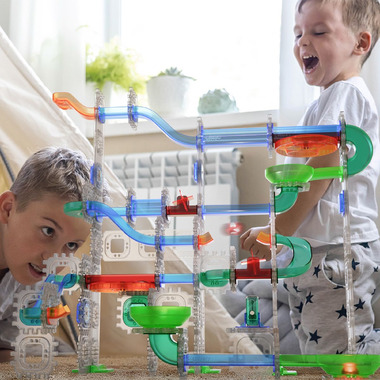 Includes: 92 pieces for versatile track construction LED marbles and light-up components Engages children in STEM learning Suitable for kids ages 6 and up Perfect for solo or group play Package Includes: Building Pieces 2 LED Marbles 4 White Marbles 2 LED Spotlights 2 LED Tiles Package Includes: Building Pieces, 6 Marbles, 2 LED Spotlights, 2 LED Tiles Build and race on a glowing 92-piece marble run.