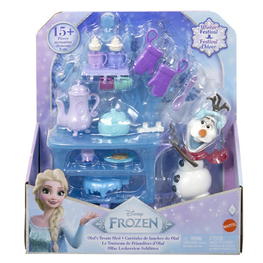 Inspired by the Frozen: Winter Festival series, kids will love to imagine helping Olaf doll pass out treats to the townspeople of Arendelle with the Olaf Treat Sled playset! The menu for fun is huge with 15+ accessories, including tasty treats like hot cocoa, cookies and more! There is no place Olaf doll's icy cart can't go with a push to get the story moving! Kids can create wintry wonder or relive their favorite moments from the Frozen: Winter Festival short-form series with Olaf doll and his treat cart.
