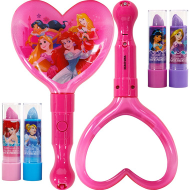 Now her lips will look royal and moisturized! This Disney Princess Cosmetic Set includes 4 shades of flavored lip balm that twist up like lipsticks. She can chose from pink, two different shades of purple, or blue, so she can sparkle like her favorite princesses. And she can check out her princess look with the bonus light-up mirror included!