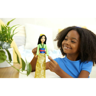 Meet this Mulan doll, inspired by the courageous and strong-willed princess from the classic Disney movie. This posable fashion doll is shown in a sparkling outfit and accessories that include shoes and a tiara. In her signature look from the movie, this Mulan doll is ready for any adventure! Doll cannot stand alone. Colours and decorations may vary.