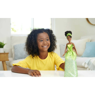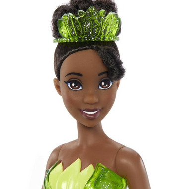 Meet this Princess Tiana doll, inspired by the ambitious and determined heroine from Disney's The Princess and the Frog. This posable fashion doll is shown in a sparkling outfit and accessories that include shoes and a tiara. In her signature look from the movie, this Tiana doll is ready for any adventure! Doll cannot stand alone. Colours and decorations may vary.