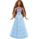 - Push the doll's shell necklace to see her transform from a human wearing an elegant blue dress to a mermaid with a sparkling, ombre-colored tail!