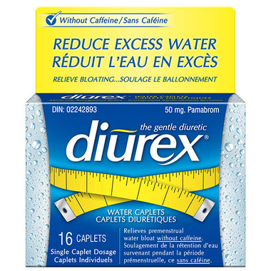 Diurex Water Caplets relieves premenstrual water bloat WITHOUT CAFFEINE.