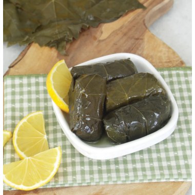 These traditional (vegan) Dolmas are lovingly stuffed with a mix of creamy Arborio rice, onion, mint and dill. Using the most tender, early-harvest grape leaves and wrap/stuff every Dolma by hand. Serve with Feta and pita bread or warm in the oven with tomato sauce