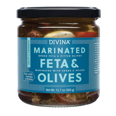 Greek Feta marinated with smoky and fruity olives is the perfect start to any happy hour or cheese board. And if that wasn't enough, it's wonderful tossed into grain bowls or chopped and stuffed into an avocado with some hot sliced peppers.