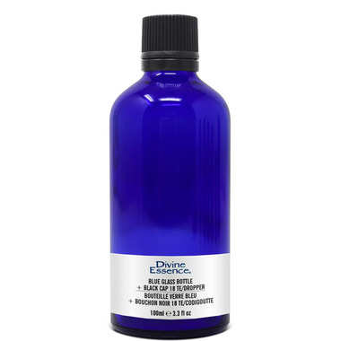 Blue Glass Bottle 100ml + Black Cap 18 TE/Dropper