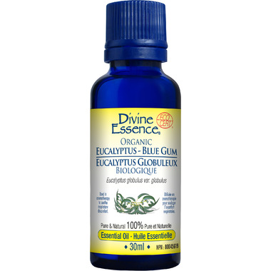 Divine Essence Eucalyptus Blue Gum Organic Essential Oil has a fresh, woody, earthy Eucalyptus aroma. Eucalyptus is known for its antiseptic and antibacterial properties.