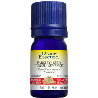 Divine Essence Parsley Essential Oil is used in aromatherapy to help relieve joint and muscle pain associated with sprains, strains and rheumatoid arthritis and as calm.
