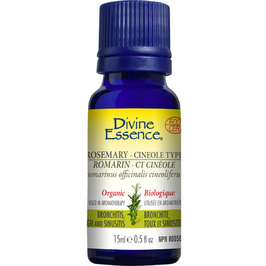 Divine Essence Rosemary Cineole Type Organic Essential Oil has a fresh, herbaceous scent and has purifying properties.