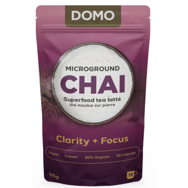 DOMO Chai presents exquisite notes of micro ground black tea, Ginger, Cinnamon, Cloves, and Cardamom, complemented by a subtle peppery undertone. It is delicately sweetened with organic cane sugar. Crafted using real, finely-ground Black Tea (no tea extracts here) and a symphony of aromatic spices! Skip pricey, artificial lattes—enjoy café-quality SUPERFOOD tea lattes at home! Just scoop, stir, and sip for delicious, wholesome flavor without the chemicals.