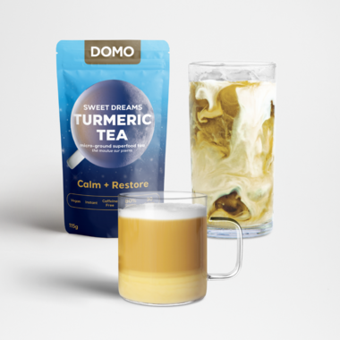 DOMO™ Sweet Dreams Turmeric Rooibos Tea embraces the calming essence of lemon leaf balm and the super powers of microground rooibos and turmeric, culminating in a subtle and pleasing sweetness. The addition of organic cane sugar enhances the blend, complementing the real, micro ground rooibos tea latte and exquisite combination of spices! With its caffeine-free nature, rooibos tea is a perfect choice for a tranquil evening ritual.Skip pricey, artificial lattes, enjoy café-quality SUPERFOOD tea lattes at home! Just scoop, stir, and sip for delicious, wholesome flavor without the chemicals.