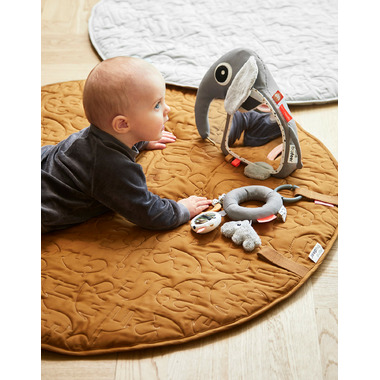 The Elphee activity floor mirror is designed with many sensory features like colourful tags, tactile textures, crinkle and rattle sounds - great for little eyes and fingers to explore.
