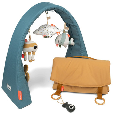 Tiny explorers have fun with the Sea friends - Jelly and Wally - and the stimulating features of the Activity gym. The winner of the Red Dot Design Award 2016 with an ocean theme in colours to match has many features and include a soft-padded play mat.