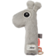Raffi's long neck is perfect for little fingers to grasp, ready to explore the sounds of the sweet rattle and exciting squeaker.