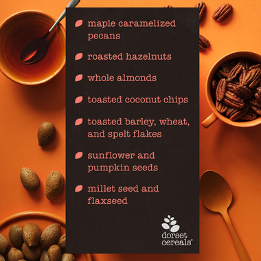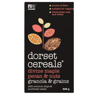 It's time to go for the good. Dorset Cereals Divine Maple Pecan & Nuts Granola & Grains is a cereal experience that will reinvigorate your breakfast routine. Jam-packed with quality ingredients, this crunchy granola features caramelized pecans, whole almonds, coconut chips, sunflower seeds and more. Delicious maple syrup flavour adds the perfect touch of sweetness. Add your favorite milk for a hearty bowl to start your day or top off with Greek yogurt and berries for a swoon-worthy parfait.