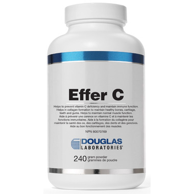 Douglas Laboratories Effer C contains corn-free vitamin C, specially buffered with calcium, magnesium and potassium and makes an effervescent drink when mixed with water or juice. Vitamin C has numerous biological functions. Foremost, it helps in the formation of connective tissue, as vitamin C is essential for the synthesis of collagen. It is this role of vitamin C in the formation of connective tissue that makes it essential for the development and maintenance of bones, cartilage, teeth and gums. Vitamin C is the required coenzyme for two groups of enzymes that catalyze the cross-linking of collagen fibers making vitamin C essential for wound healing. Vitamin C is among the most powerful antioxidants as laboratory studies show that vitamin C protects lipids in plasma and low-density lipoproteins (LDL) against atherogenic peroxidative damage.