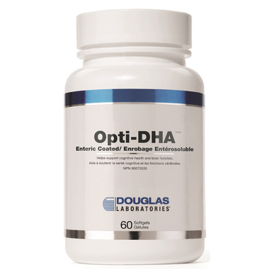 Douglas Laboratories Opti-DHA Enteric-Coated softgels contain a novel ratio of essential omega-3 fatty acids, derived from the highest potency marine lipid concentrate. Processed by extensive molecular distillation to ensure the purest product possible, Opti-DHA™ is an excellent source of fatty acids, providing 450 mg of docosahexeanoic acid (DHA) and 150 mg eicosapentaenoic acid (EPA) per 2 softgels. Opti-DHA™ is enteric-coated, significantly reducing the “fishy” taste sometimes associated with marine lipid supplements.