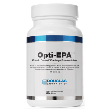 Opti-EPA™ enteric-coated softgels, provided by Douglas Laboratories®, supplies significant amounts of essential omega-3 fatty acids, derived from marine lipid concentrate. Processed by molecular distillation, Opti-EPA™ is an excellent source of these fatty acids, providing 660 mg of eicosapentaenoic acid (EPA) and 340 mg docosahexeanoic acid (DHA) per serving.