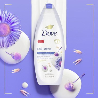 - De-stress your skin and unwind at the end of a long day with Dove Anti-Stress body wash