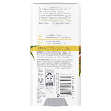 Looking for a hydrating deodorant without aluminum? Dove Care by Plants Lemongrass Deodorant Stick is a sodium bicarbonate free deodorant without aluminum thats specially designed to help you feel comfortable and fresh all day. Made from 99% natural origin ingredients, this aluminum free deodorant harnesses the power of plants to renew, replenish, and protect your skin for long-lasting freshness and gentle underarm skin care. Packed with plant actives, it's a 24-hour deodorant for women that will nourish your skin while keeping you protected from odour. With a 100% natural origin fragrance, this paraben free deodorant without aluminum has a fresh and earthy lemongrass scent to keep you feeling your best, regardless of what the day holds. Trust Doves 24-hour odour protection and care from 99% natural origin ingredients to leave skin smelling and feeling great.