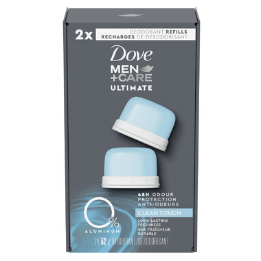 - The Dove Men+Care Ultimate 0% Aluminum Refillable Deodorant for men comes with 2 deodorant refills