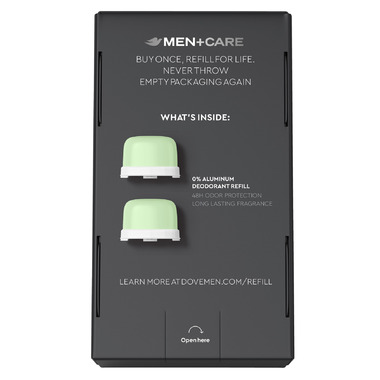 - The Dove Men+Care Ultimate 0% Aluminum Refillable Deodorant for men comes with 2 deodorant refills