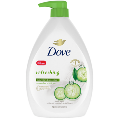 Restore your skin and delight your senses with Dove Refreshing Cucumber & Green Tea Body Wash.