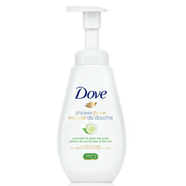 With a bouncy, airy foam, Dove Shower Foam Cucumber & Green Tea scent Foaming Body Wash rinses off quickly, leaving behind beautifully clean, deeply nourished surface skin.