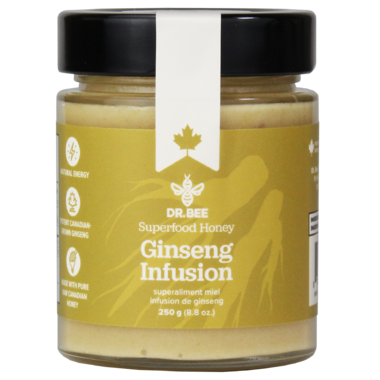 Herbal Infusion Energy Boost. Boost your wellness regime with Dr. Bee's Ginseng Superfood Honey, combining our high quality raw honey with 5 year aged ginseng for maximum bioavailability.
