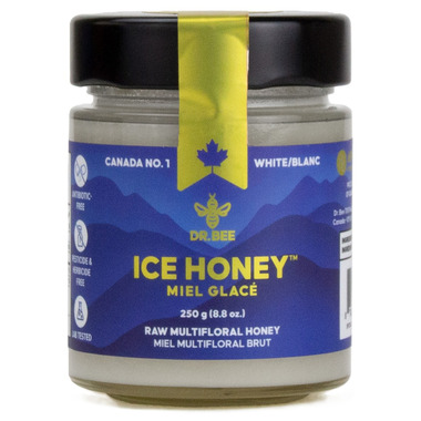 Pure Raw Canadian Honey from Rocky Mountain Glacier-fed Wildflowers. Snow-white in colour, this Ice Honey boasts a smooth, velvety texture and elegant sweetness.