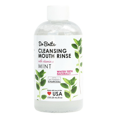 Enjoy the feeling of a fresh mouth with the Dr. Brite Cleansing Mouth Rinse.  Infused with vitamin-C and no harmful chemicals.  Your mouth will benefit from the detoxing power of organic coconut oil, activated white charcoal, and natural Vitamin-C to reduce inflammation.  Designed to provide you optimal results, it combines robust botanical additions that revitalize breath and brighten teeth.  This good-for-you mouth rinse freshens breath using natural menthol and spearmint essential oil.  It also helps dry mouth, and works to reduce plaque with organic aloe vera juice.