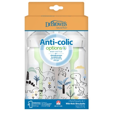 Your options have never been better with Dr. Browns Natural FlowҮ Anti-Colic Options+ Wide-Neck Baby Bottle. The anti-colic internal vent system is clinically proven to reduce colic. Dr. Brownْs bottles provide a more comfortable feeding experience for baby by decreasing spit-up, burping and gas. This vacuum-free feeding is closest to breastfeeding and Dr. BrownΒs silicone nipples provide a consistent flow so baby can feed at their own pace. The breast-like nipple shape encourages a proper latch for a more natural bottle feeding experience and eases the transition from breast to bottle and back again.