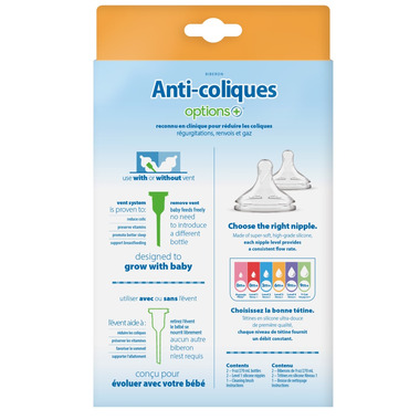 Your options have never been better with Dr. Browns Natural Flow Anti-Colic Options+ Wide-Neck Baby Bottle. The anti-colic internal vent system is clinically proven to reduce colic. Dr. Brown's bottles provide a more comfortable feeding experience for baby by decreasing spit-up, burping and gas. This vacuum-free feeding is closest to breastfeeding and Dr. Browns silicone nipples provide a consistent flow so baby can feed at their own pace. The breast-like nipple shape encourages a proper latch for a more natural bottle feeding experience and eases the transition from breast to bottle and back again.