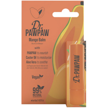 Dr. Pawpaw Mango Lip Balm is a vegan and 99% natural miracle balm, housed in a twist-up stick for easy on-the-go application. Infused with their award-winning blend of hero ingredients, PAWPAW fruit (papaya) loved for its deeply nourishing benefits, Aloe Vera to help soothe and comfort your pout, Castor Oil and Olive Oil chosen for their next-level moisturizing powers.