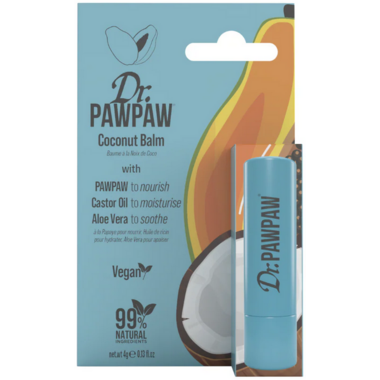 Dr.Pawpaw Coconut Lip Balm is a vegan and 99% natural miracle balm, housed in a twist-up stick for easy on-the-go application. Infused with their award-winning blend of hero ingredients, PAWPAW fruit (papaya) loved for its deeply nourishing benefits, Aloe Vera to help soothe and comfort your pout, Castor Oil and Olive Oil chosen for their next-level moisturising powers. Topped off with a creamy hint of Coconut, this balm will keep your lips feeling soft and nourished with a tropical twist.
