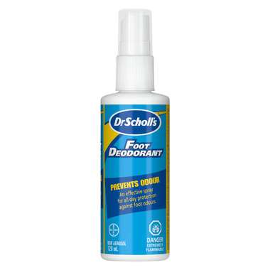 Dr. Scholl’s® Foot Deodorant is an effective spray for all-day protection against foot odours.