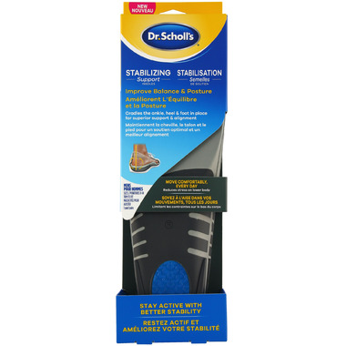 Dr. Scholl’s Stabilizing Support Insoles improve stability, balance & posture so you can move more easily throughout the day. Experience the comfort immediately with the shock absorbing heel cup that reduces stress on the lower body and motion control stabilizing shell that helps ensure better ankle alignment.