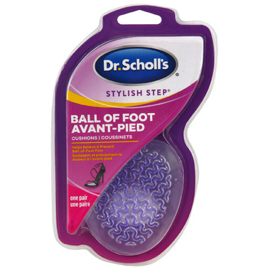 | Dr. Scholl’s Stylish Step Ball of Foot Cushions for High Heels specifically for women who experience ball of foot pain when wearing heels. These discreet cushions stay firmly in place and absorb shock for all-day comfort. The package includes one pair of cushions. Dr. Scholl's has been a trusted brand in foot care since 1904 when Dr. William Mathias Scholl, grandson of a cobbler, launched the company under the name Dr. Scholl Inc. |