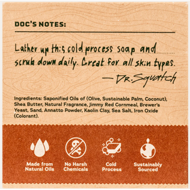 Turn your shower into cocktail hour with the intoxicating scent of Wood Barrel Bourbon. A refined blend with aromas of patchouli, clove and guaiac wood will transport you to your man cave with your favorite drink in hand. Taking a tip from distillers, we combine exfoliating Jimmy Red Corn, known for making the best bourbon, with soothing Brewer’s Yeast to craft this perfect barrel-aged brew that will leave your skin feeling as good as an Old Fashioned tastes.