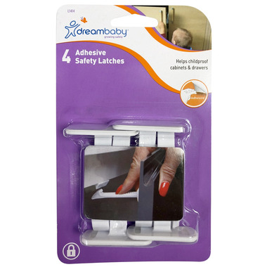 Dreambaby Adhesive Safety Latches are strong, easy to install, durable locks. They provide quick access for adults while making it almost impossible for children to get into cabinets and drawers that may contain harmful objects. Suitable for use on the top or side of most cabinets. Adhesive Safety Latches are also suitable for use on top drawers and they may be used on lower drawers where there is a top divider to which the catch may be fitted.