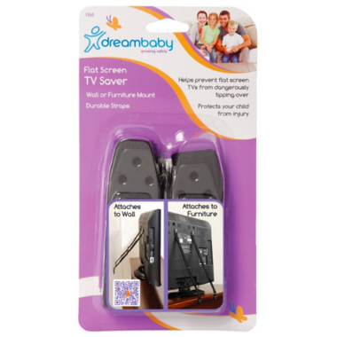 Dreambaby Flat Screen TV Savers prevent potentially serious accidents by anchoring the television to the wall or furniture with adjustable, heavy-duty straps. Dreambaby Flat Screen TV Savers were specifically designed to help prevent injuries that can occur when curious toddlers accidentally push over a heavy television.