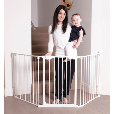 The Dreambaby Newport Adapta-Gate combines safety and convenience in one fantastic package. Hardware mounted for stability, it incorporates three hinged panels that can accommodate straight, angled, wide, and/or irregular openings and landings. Unlike many other gates that only span a doorway, it creates safe and roomy landings at the top or bottom of staircases and can also be used across wider openings. Its easy to arrange and install based upon your needs and preferences, and using the Newport Adapta-Gate makes this even easier! Designed by parents, for parents, our gate allows for one-handed operation, has a convenient automatic close-and-lock feature, and comes with an EZY-Check indicator so you know when the gate is securely closed. This gate also features a Stay-Open feature, which is perfect for when you need to move freely through the gate such as when you're carrying groceries. Cleverly designed, the Dreambaby Newport Adapta Gate swings open in both directions, but you can limit it to open in only one direction. This feature is especially important when used at the top of stairs. Hinged panels can accommodate openings of 33.5 - 79 across. Gate measures 29 high.