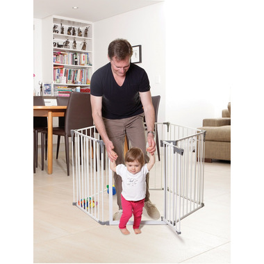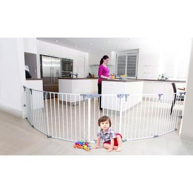 Give your child the room they need to play freely, while keeping them in a safe space with the Dreambaby Royale 3-in-1 Converta Play-Pen Gate. This versatile gate is perfect for protecting your family, home, or pets. Depending on where you want to keep your child in or out of, it can be used as a freestanding play-yard, a hardware mounted fireplace restrictor, or hardware mounted wide barrier gate. Install around the fireplace to prevent children and pets from getting too close. Use it as a wide barrier gate in your kitchen to keep your child out of harms way. Your play-yard is great to be used at home, on vacation, or grandmas house for the weekend and can be folded for easy storage. If you're entertaining, you can simply pack it up and put it aside until you need it again, giving you security at your command. The Royale Converta has the clever Smart Stay-Open feature. This allows you to position the door open for when you need it. Whether its tidying up the play-yard or carrying laundry or groceries through the gate barrier, this feature is very convenient. The Royale Converta has 6 panels made from heavy duty metal, designed to be large enough to accommodate your needs and strong enough to stand up to the wear and tear around your house. It is designed to fit spaces up to 151 inches wide, and for times when you want even more space additional panels come in a set of two (sold separately) and can be quickly and easily added. The Dreambaby Royale 3-in-1 Converta Play-Pen Gate is ideal for keeping your child or pet safer in any part of your home or on the go.