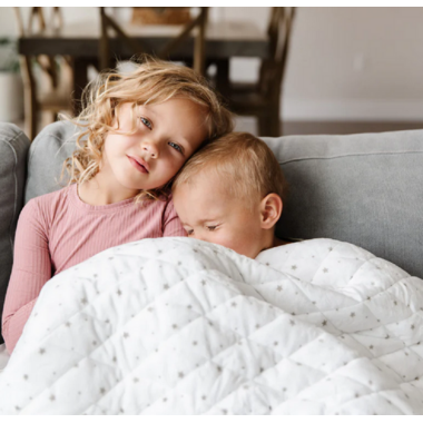 The Dream Weighted Blanket is designed to keep your child warm and cozy now and for years to come. This gentle 4lb weight feels like a secure and comforting hug and provides deep pressure stimulation to help naturally reduce anxiety, alleviate sensory overload and promote healthy sleep patterns. The Blanket features dual fabrics, cozy micro-fleece on one side, and Minky cooling material on the other, making it perfect for use while sleeping, napping, or just lounging around! This is a weighted blanket that the whole family can enjoy!