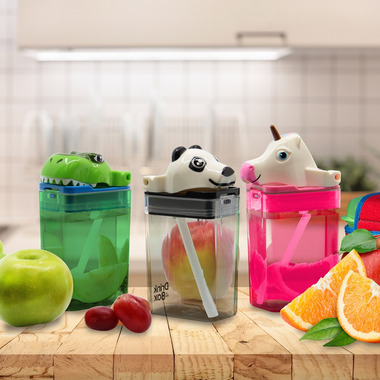 Drink in the Box FunTops make drinking fun! They are the world's only reusable drink box, BPA and Phthalate free, won't squirt or leak, and helps to hydrate your kids without all the sugar and risk of mold, or impact to the environment of a disposable juice boxes.