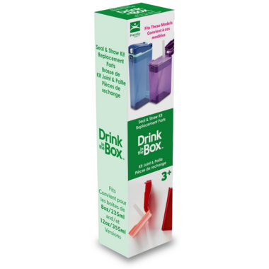 Drink in the Box Seal and Straw kit includes replacement Spout, Seal, and 2 of the 8 ounce, and 3 of the 12 ounce inner straws to keep your Drink in the Box running like new! One kit works for both the 8 oz (240ml), and 12oz (355ml) Drink in the Box. Made from fully tested medical grade silicone and PP straws