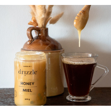 Drizzle Golden is a rich, bold, raw honey, perfectly paired with daring flavours like hot sauce, aged cheese or a cup of strong coffee.