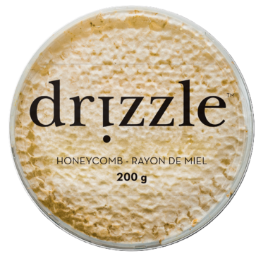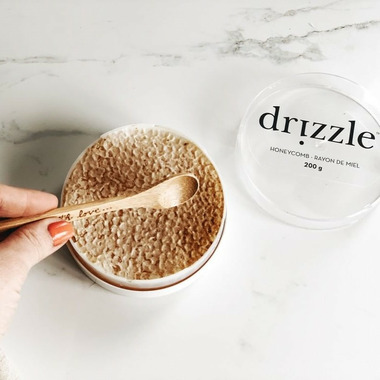 Drizzle Honeycomb is a rare and sweet indulgence. The light wax combs are 100% edible and filled to bursting with fresh, delicious honey that you can eat with a spoon. Honeycomb is the rawest form of Drizzle Honey and is a luxurious topping or pairing for cheese, fruit, meat, and bread. An essential for any charcuterie board!