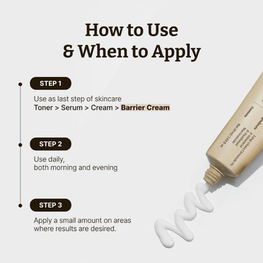 Directions: After cleansing and toning, apply a pea-sized amount as the final step in your skincare routine Gently massage into the face and neck until fully absorbed Use morning and/or evening as needed If used in the morning, allow to settle before applying sunscreen or makeup